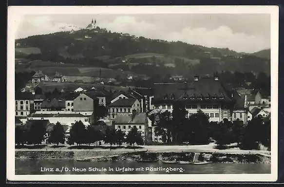 AK Linz a. D., Urfahr, Neue Schule mit Pöstlingberg