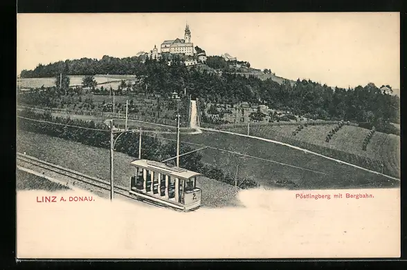 AK Linz a. Donau, Pöstlingberg mit Bergbahn