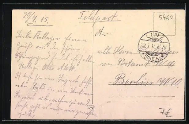 gelaufen 1915, guter Zustand