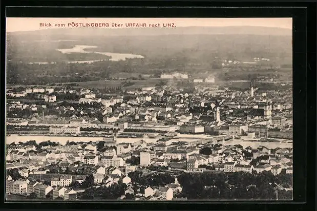 AK Linz a. d. D., Blick vom Pöstlingberg über Urfahr nach dem Ort