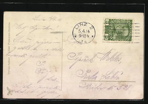 gelaufen 1916, leicht fleckig, guter Zustand