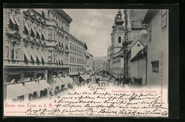 AK Linz a. d. D., Landstrasse mit Café Central