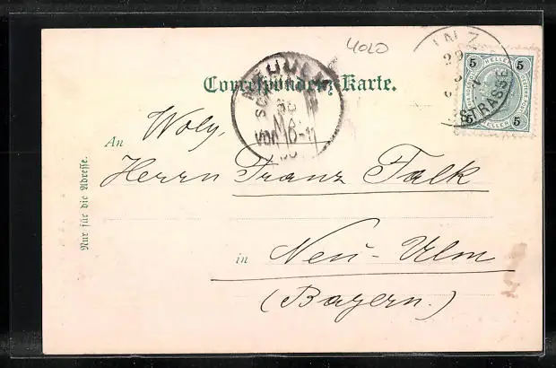 alte Ansichtskarte, gelaufen 1900, guter Zustand