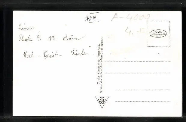 Personenbezogene Daten auf der Rückseite der Karte wurden durch blauen Textmarker unkenntlich gemacht. Die blauen Stellen sind auf die Vorderseite durchgeweicht und wirken sich negativ auf das Postkartenfoto aus