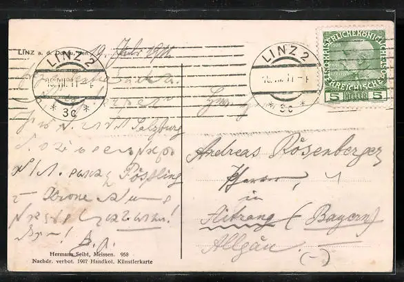 alte Ansichtskarte, gelaufen 1911, Stempelspur, guter Zustand