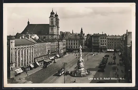 AK Linz a. d. D., Strassenbahn auf dem platz