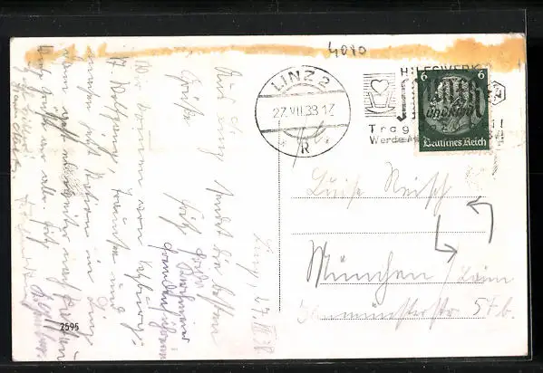 gelaufen 1938, rückseitig Klebe- und Papierreste, guter Zustand