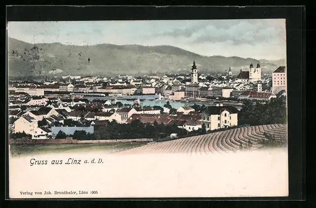 AK Linz a. d. Donau, Blick über die gesamte Stadt