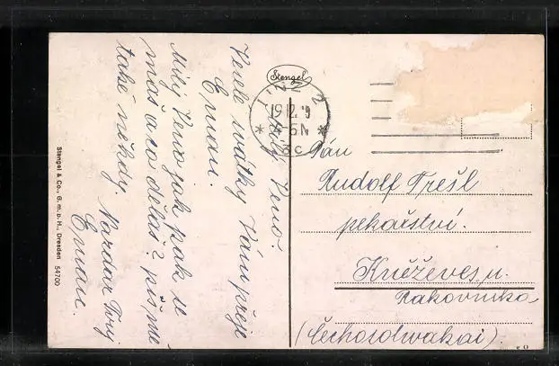 alte Ansichtskarte, gelaufen, Briefmarke entfernt, rückseitig Oberflächenschaden, guter Zustand
