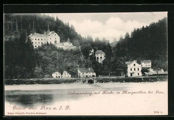 AK Linz a. d. Donau, Calvarienberg mit Kirche in Margarethen