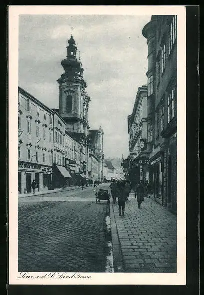 AK Linz a. d. Donau, Landstrasse mit Geschäften