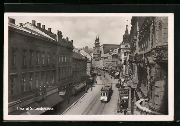 AK Linz a. d. Donau, Landstrasse mit Strassenbahn