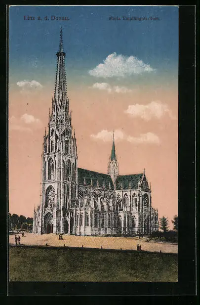 AK Linz a. d. Donau, Maria Empfängnis-Dom im Abendrot