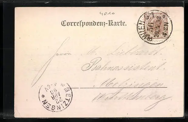 gelaufen 1898, Eckknick rechts unten, guter Zustand