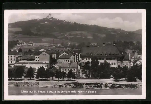 AK Linz a. d. Donau, Neue Schule in urfahr mit Pöstlingberg