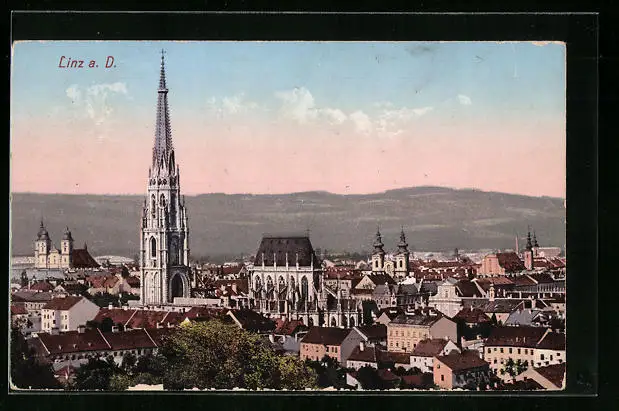 AK Linz a. d. Donau, Ortsansicht in Abendstimmung