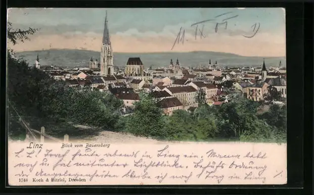 AK Linz a. d. Donau, Ortsansicht mit Blick vom Bauernberg