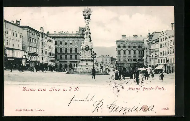 AK Linz a. d. Donau, Passanten auf dem Franz Josef Platz
