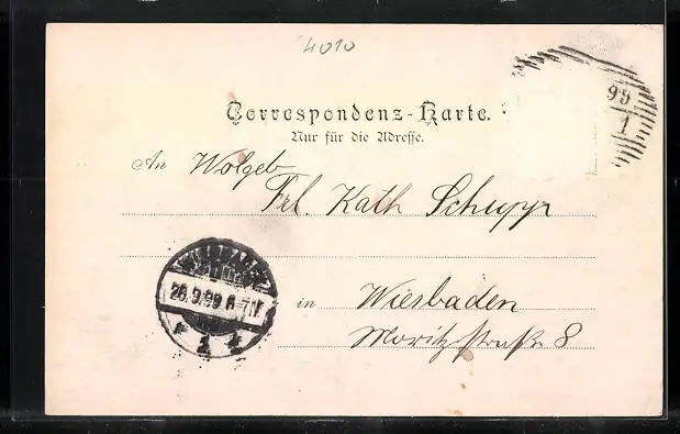 alte Ansichtskarte, gelaufen 1899, Briefmarke entfernt, guter Zustand