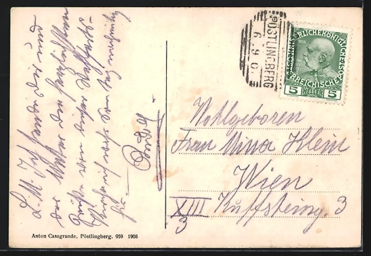 alte Ansichtskarte, gelaufen 1908, Stempelspur, guter Zustand