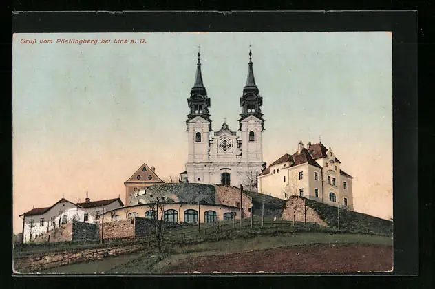AK Linz a. d. Donau, Pöstlingberg mit Wallfahrtskirche