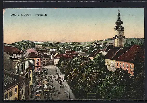 AK Linz a. d. Donau, Promenade aus der Vogelschau