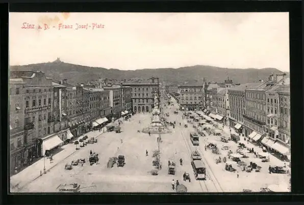 AK Linz a. d. Donau, Strassenbahn am Franz Josef-Platz