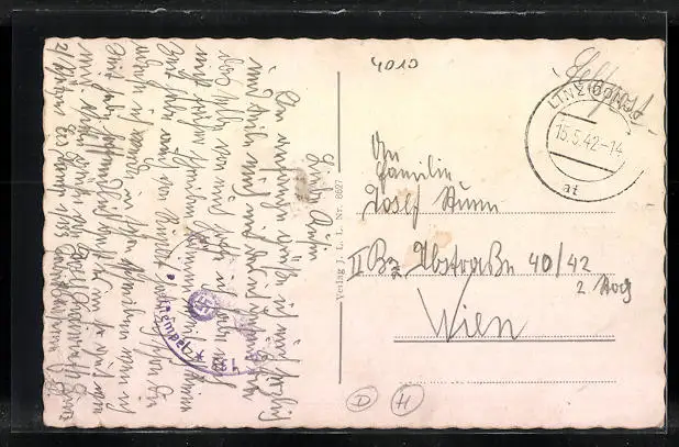 gelaufen 1942 als Feldpost, Eckknick rechts unten, guter Zustand