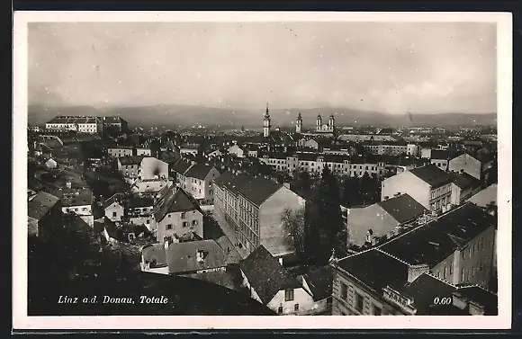 AK Linz a. d. Donau, Totalansicht mit Strassenpartie