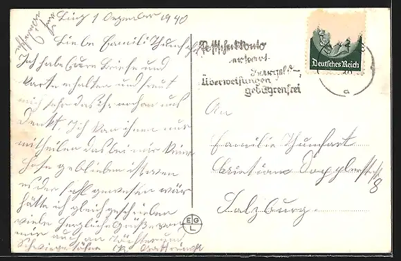 alte Ansichtskarte, gelaufen 1940, Briefmarke entfernt, guter Zustand