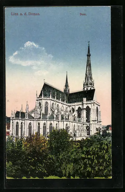 AK Linz a. d. Donau, Totalansicht vom Dom