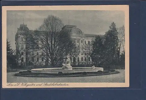 AK Linz a.D. Volksgarten und Staatsbahndirection 1923
