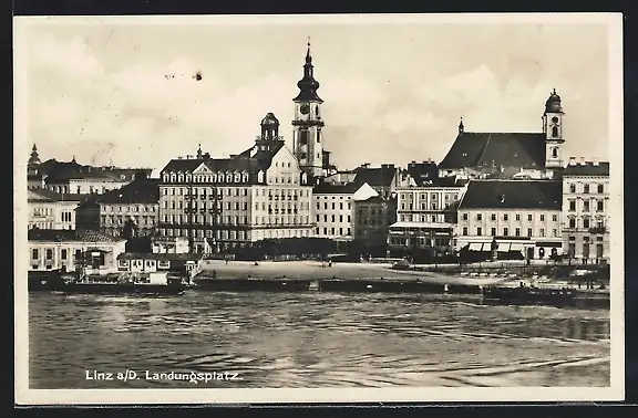 AK Linz a.d. Donau, Landungsplatz mit Hotel