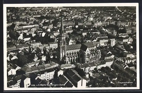 AK Linz a.d. Donau, Maria-Empfängnis-Dom aus der Vogelschau