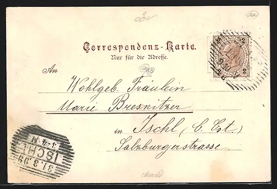 alte Ansichtskarte, gelaufen 1899, Stempelspur, guter Zustand