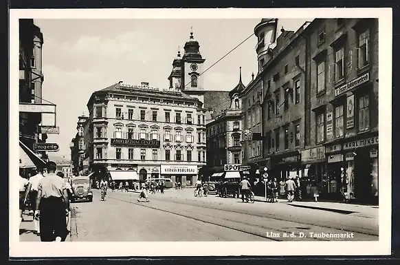 AK Linz a.d. Donau, Taubenmarkt mit Geschäften