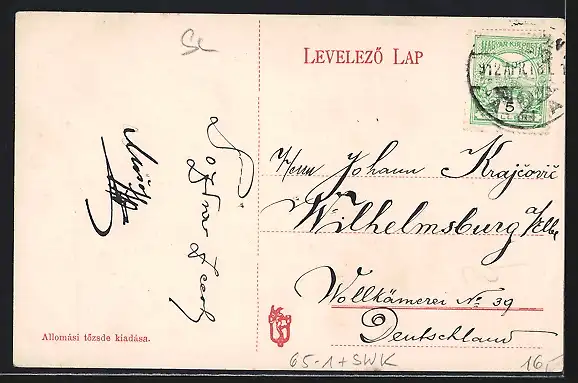 Personenbezogene Daten auf der Rückseite der Karte wurden durch blauen Textmarker unkenntlich gemacht. Die blauen Stellen sind auf die Vorderseite durchgeweicht und wirken sich negativ auf das Postkartenfoto aus