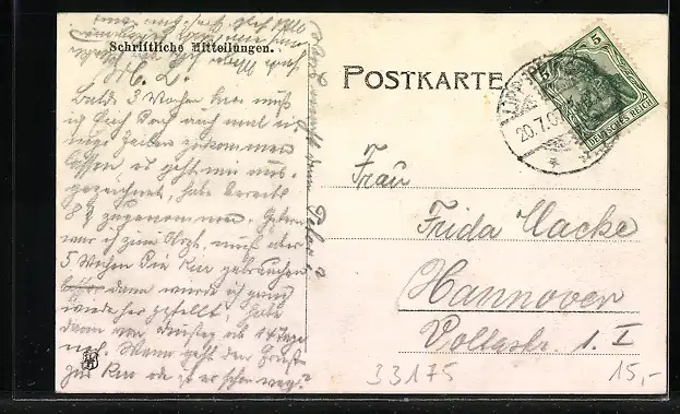 alte Ansichtskarte, gelaufen 1907, guter Zustand
