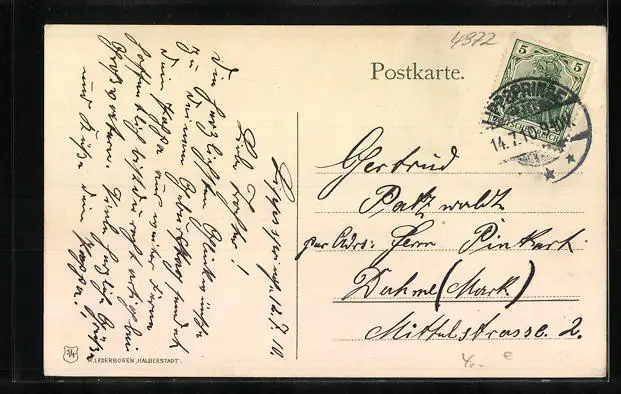 alte Ansichtskarte, gelaufen 1910, guter Zustand