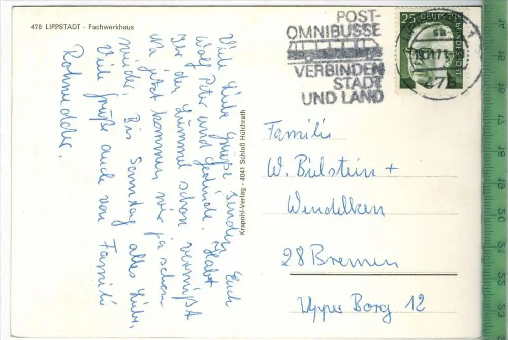 AK Lippstadt-Fachwerkhaus, 1971 Verlag: Schloß Hülchrath, Postkarte mit Frankatur, mit Stempel 19.11.1971 Erhaltung: I-II, Karte wird in Klarsichthülle verschickt.(H)