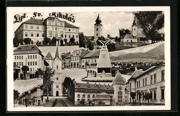AK Liptovský Mikulás, Ortsansicht, Kirche, Denkmal und Gebäude, Fotomontage