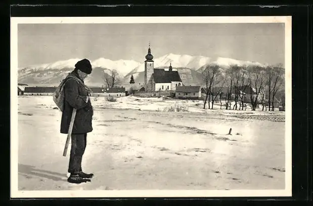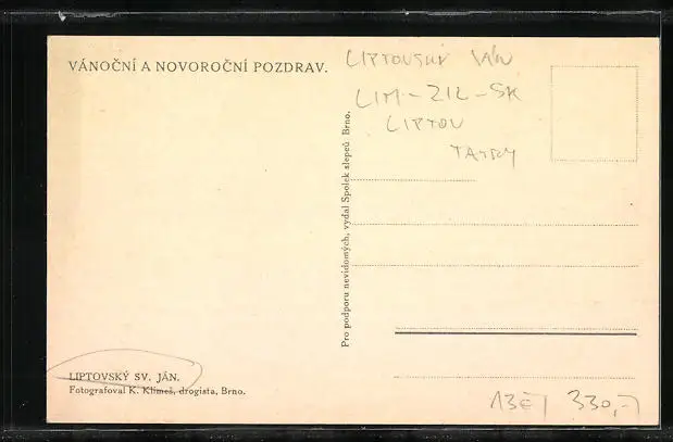 AK Liptovsky Sv. Jan, Ortsansicht im Schnee, Vánocni a novorocni pozdrav