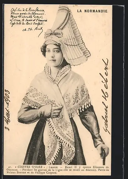 AK Lisieux, Französin in Nationaltracht der Normandie