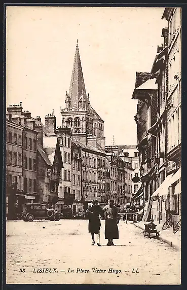 AK Lisieux, La Place Victor Hugo avec vue sur l`église et passants