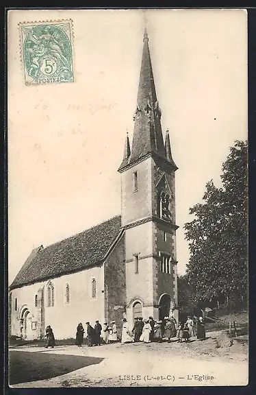 AK Lisle, L`Église et groupe de fidèles devant l`entrée