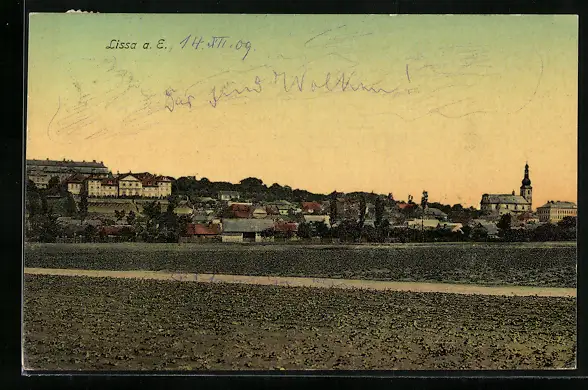 AK Lissa a. E., Teilansicht mit Kirche
