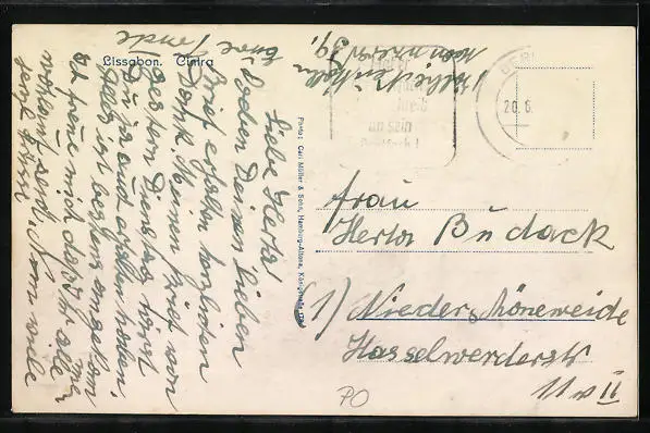alte Ansichtskarte, gelaufen, Briefmarke entfernt, guter Zustand