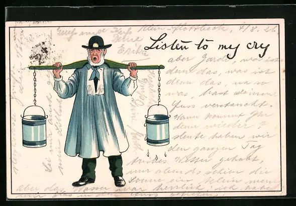 AK Listen to my cry, Älterer Herr trägt Wassereimer