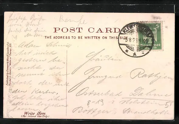 alte Ansichtskarte, gelaufen 1921, Eckknicke re., Stempelspur, guter Zustand
