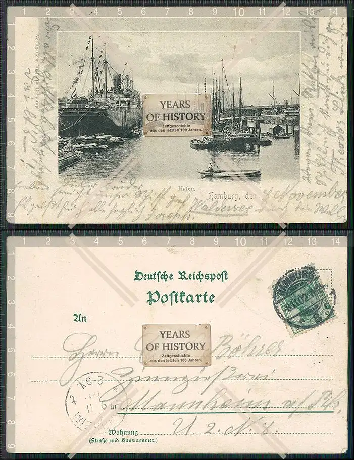 AK Litho Hamburg Hafen mit Segelschiffen Dampfer 1902 gel. M2024-02-16-132AK Litho Hamburg Hafen mit Segelschiffen Dampfer 1902 gel.